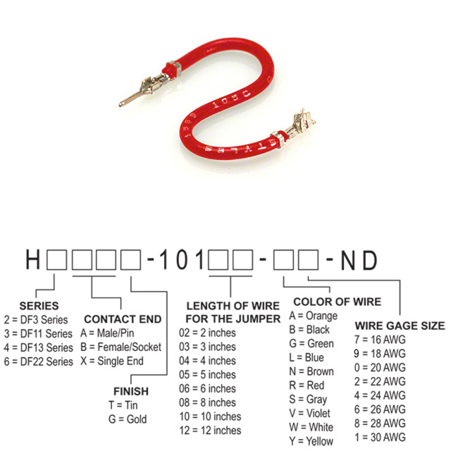 Leiða frjáls staða / RoHS staða Lead free / RoHS Compliant nákvæm lýsing Red 24 AWG Jumper Lead Pin to Socket Tin 10.0" (254.0mm)